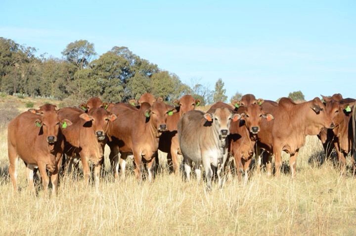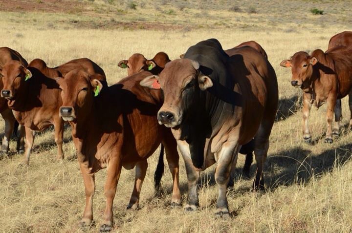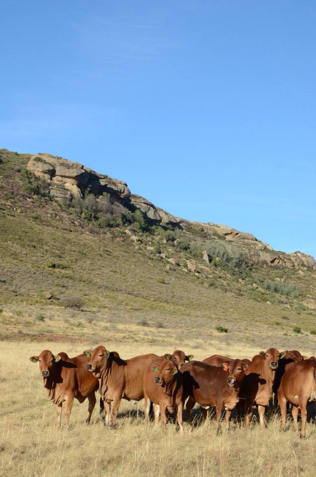 The first rain of the season heralds the start of our cattle breeding season here in the Eastern Free State. After a good long rest over winter, our bulls have all been tested for fertility and STDs and now they are being put to work with the ladies. Here is group of young heifers, mainly from our previous herd sire Rustin MHB 06-30, who have been joined for the first time by one of our stunning young bulls, Zambuca VST 11-01 (Khan MHB 04-27 x Zelma). He is a very exciting prospect who is a strong contender to take over the role of herd sire at Vastrap. He is already on the job – any of you girls keen for a body slammer?!