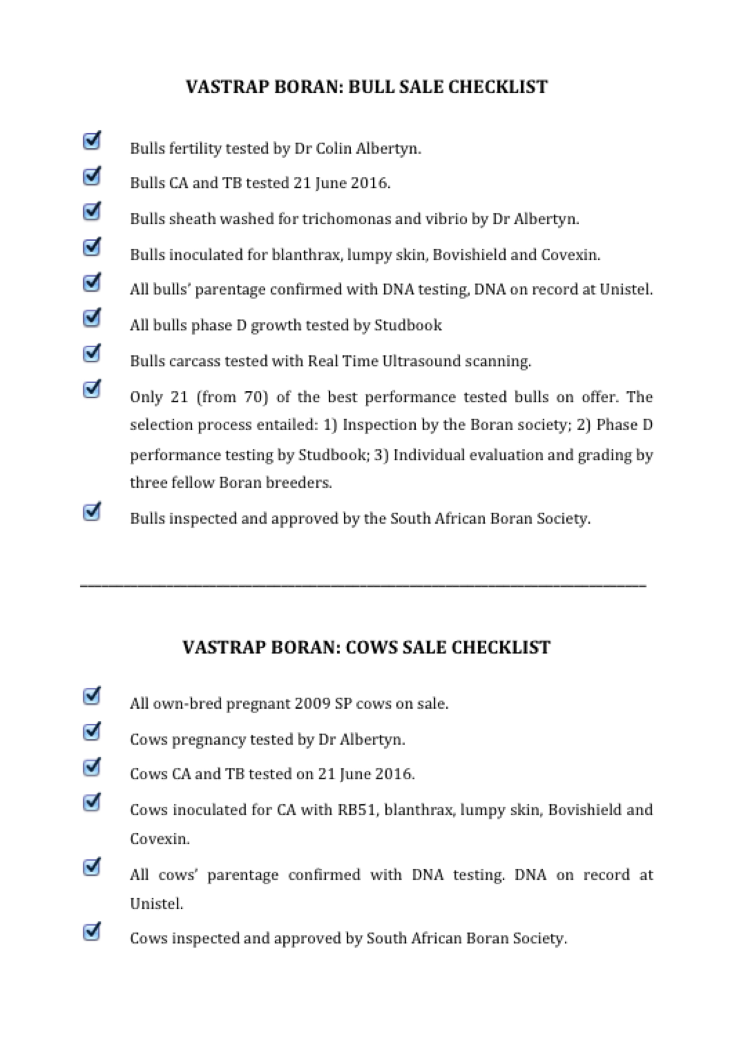 At Vastrap Boran, we verify the parentage of every stud animal through DNA testing at Unistel laboratories. This is not only because we use more than one bull in each breeding herd (multi-siring), but also because we believe that it is crucial to establish the parentage of our animals with 100% certainty.