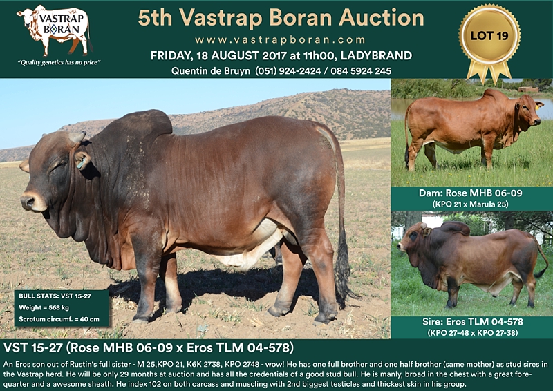 Hi Sitali, the Vastrap Auction is on 16 August this year. 20 of our best 3-year old bulls will be on offer. Please see all the details on our website and let us know if you have any further questions. Regards, Quentin
