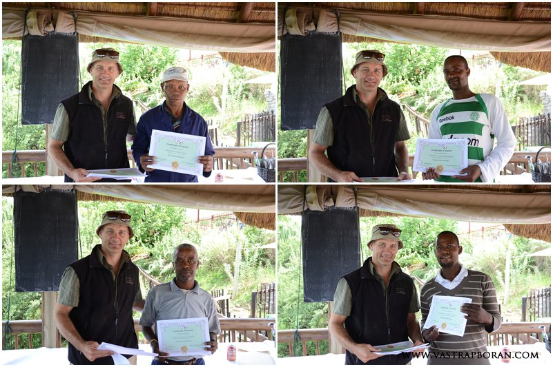 During the lunch break we also handed out awards for long service and performance. The long service awards ranged from 5 years to 35 years – two people, Malefa Lephatsoe and Thabiso Rasoeu, have been with us for 30 years or more! They will each be given a cow in appreciation of their loyal service. Other awards were for 100% Work Attendance, Excellent Workmanship and Extraordinary Effort. Special gifts will also be given to the recipients of these awards.