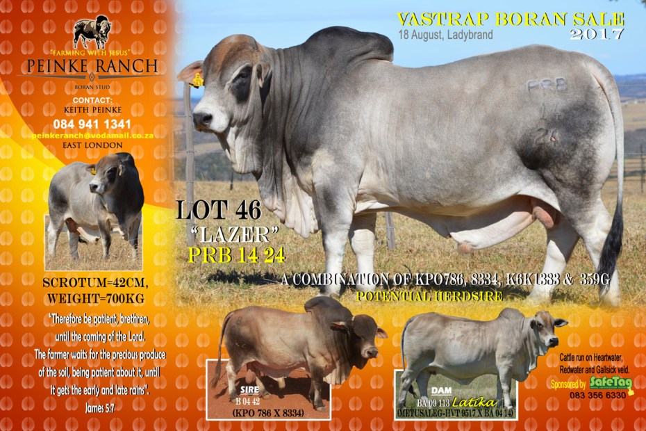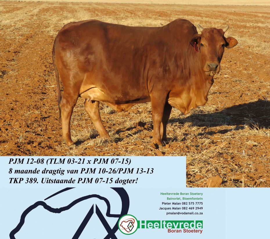 2017 Vastrap Sale Catalogue Lot 54. FPL 12-47 top Beertjie daughter. She is out of a exceptional mother with a ICP of 357 days (4). 7 Months pregnant to FPL13-36 (De la Rey X Tanya son)