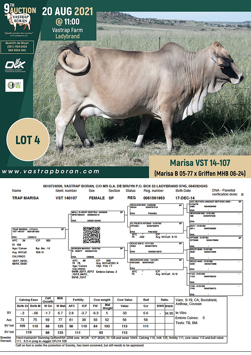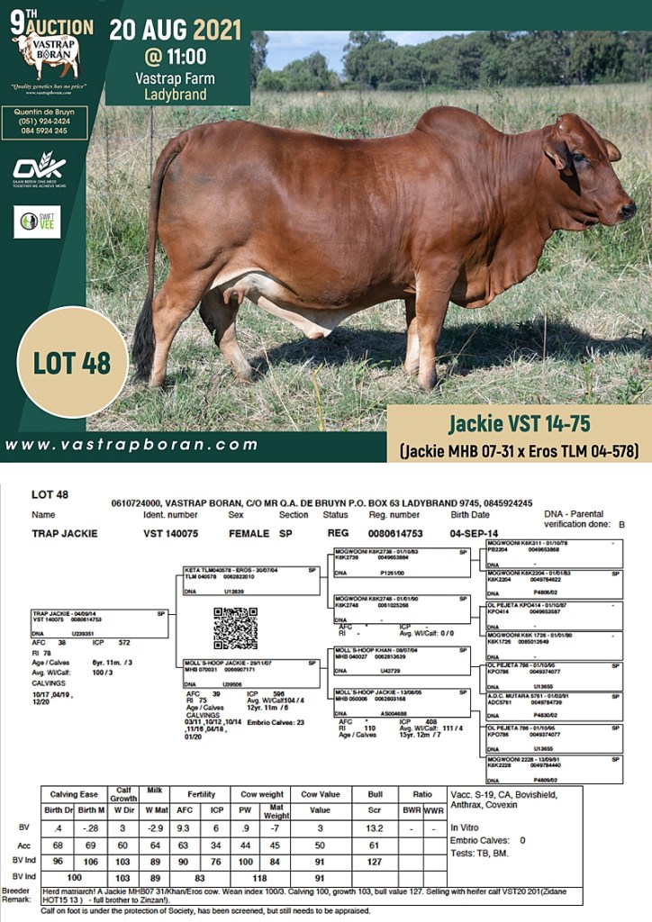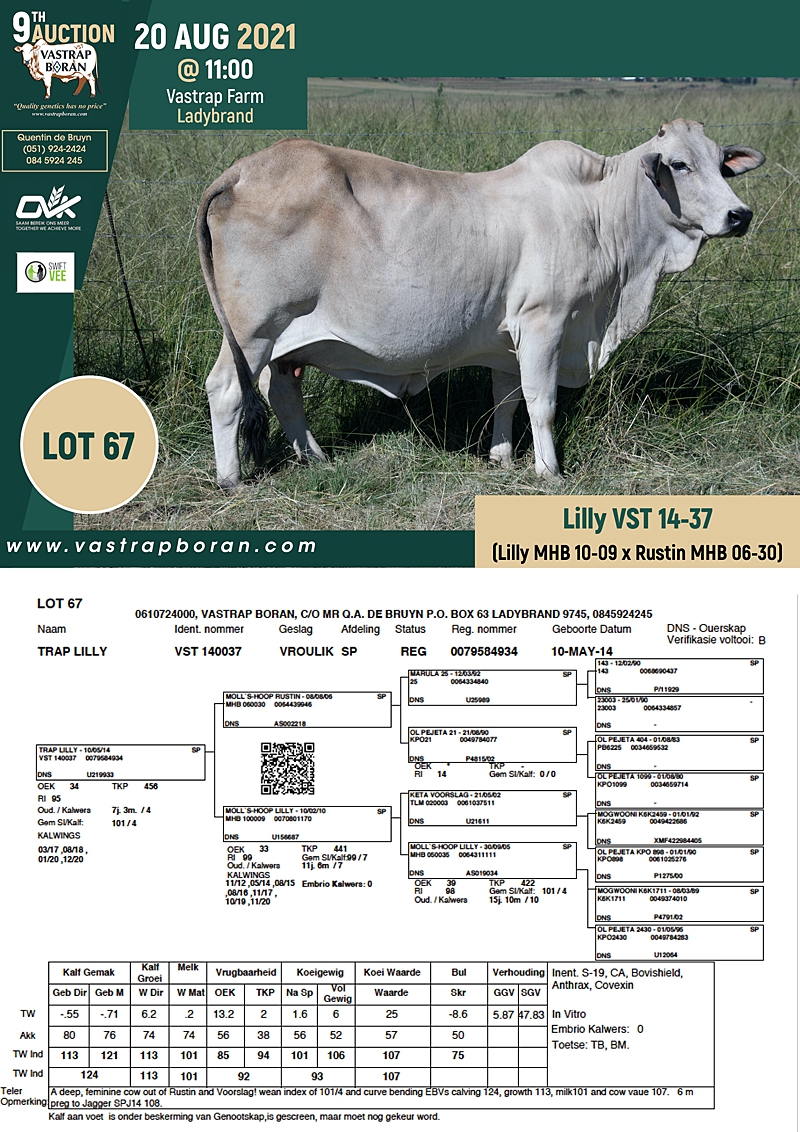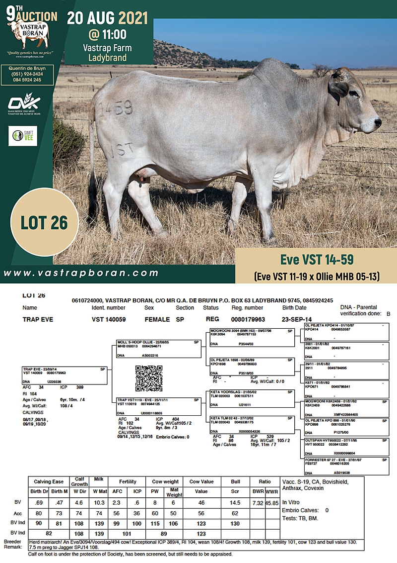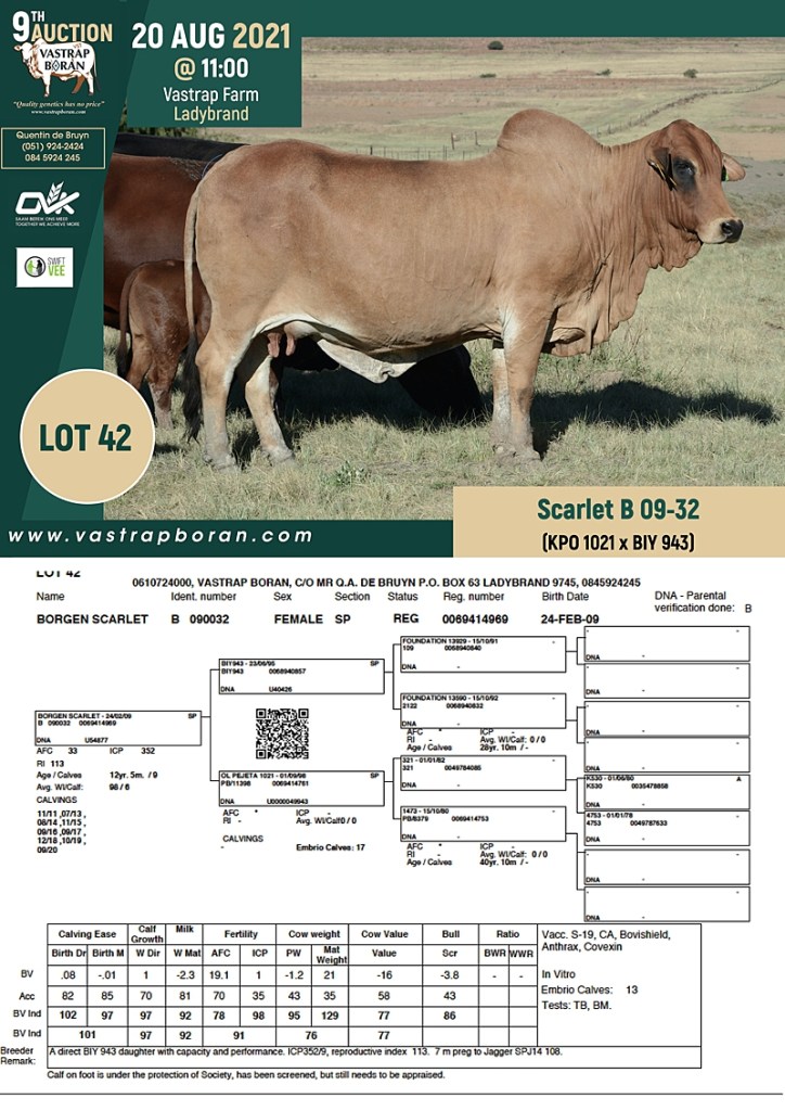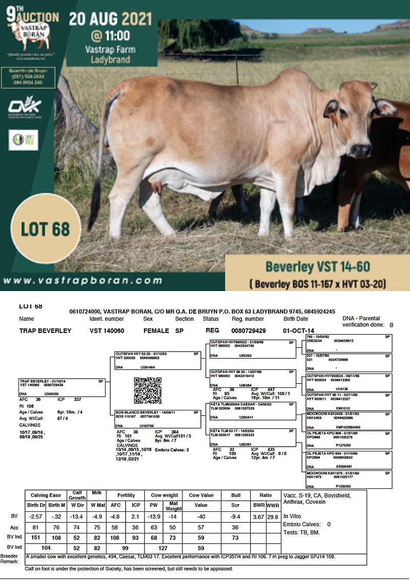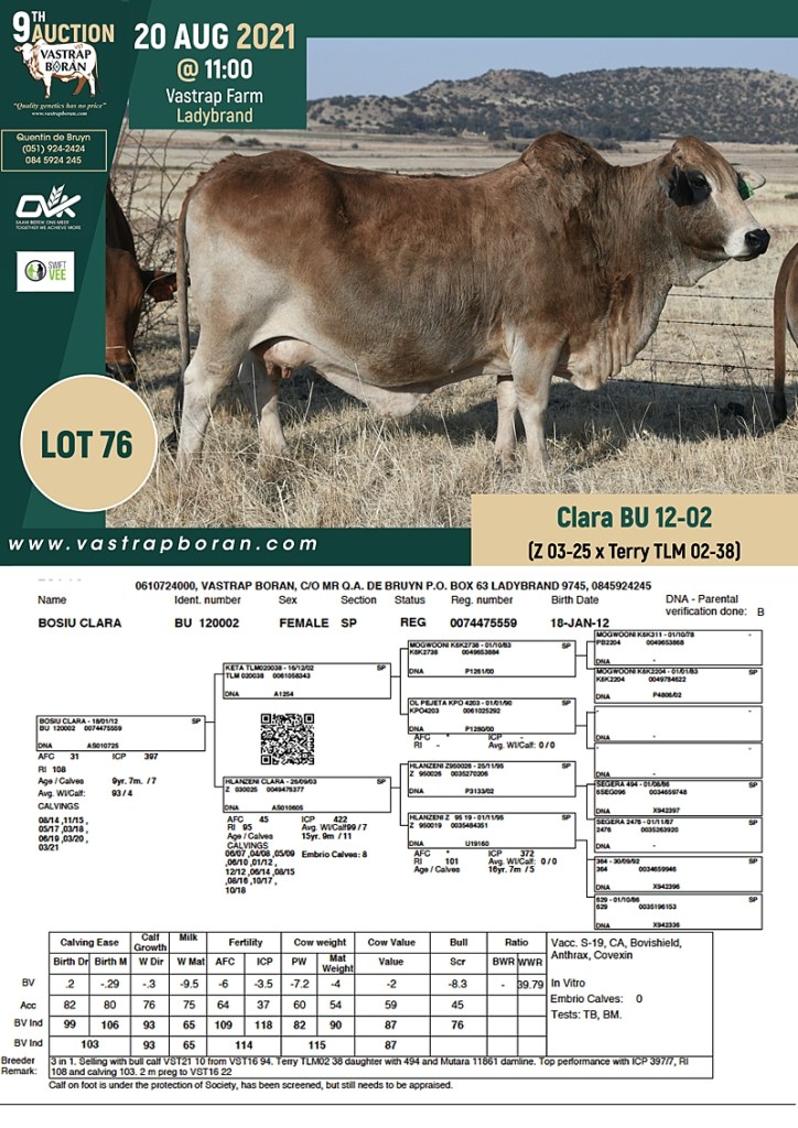 2021 Vastrap Auction CATALOGUE How to Use EBVs for Selection The Vastrap Boran 7-year Old Cow Offering – your best value proposition ever! Vastrap Cow Performance Data