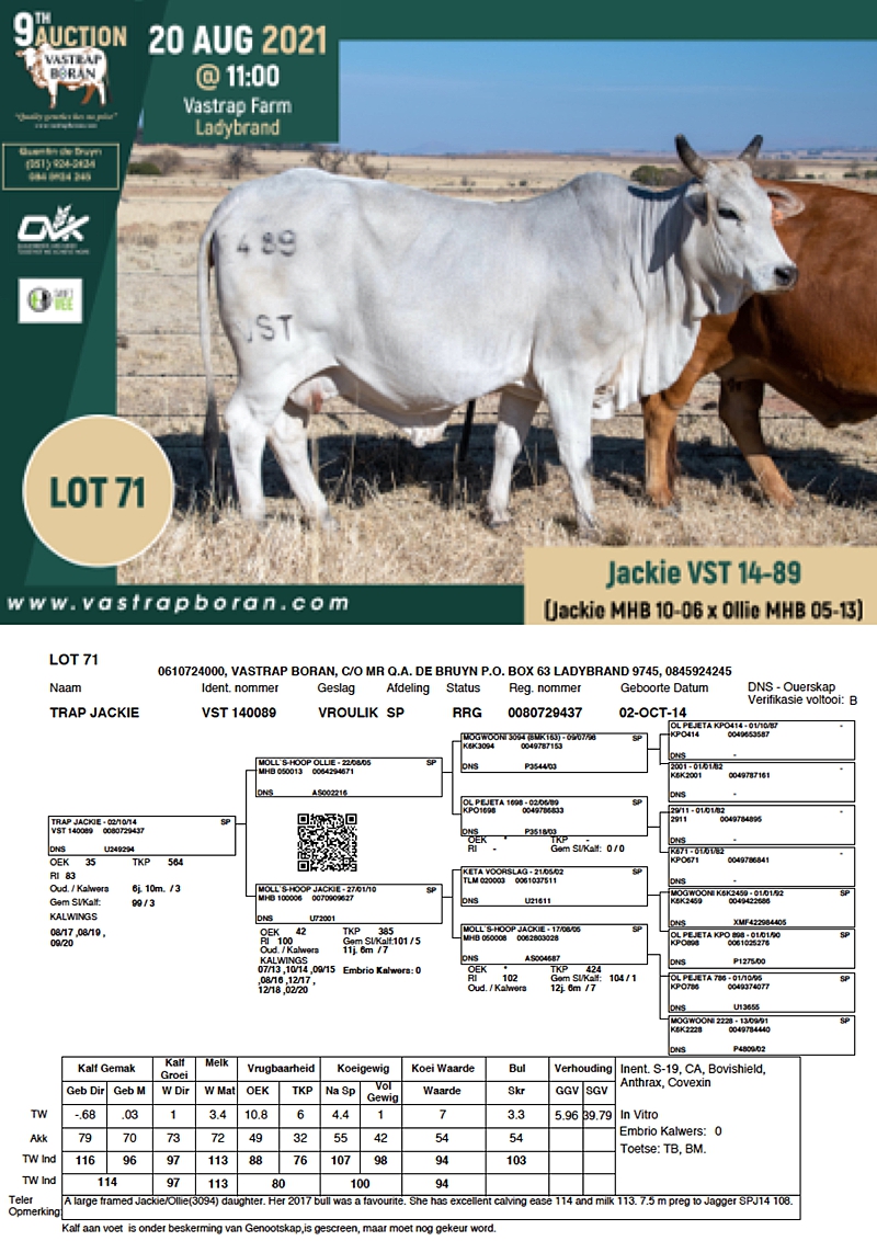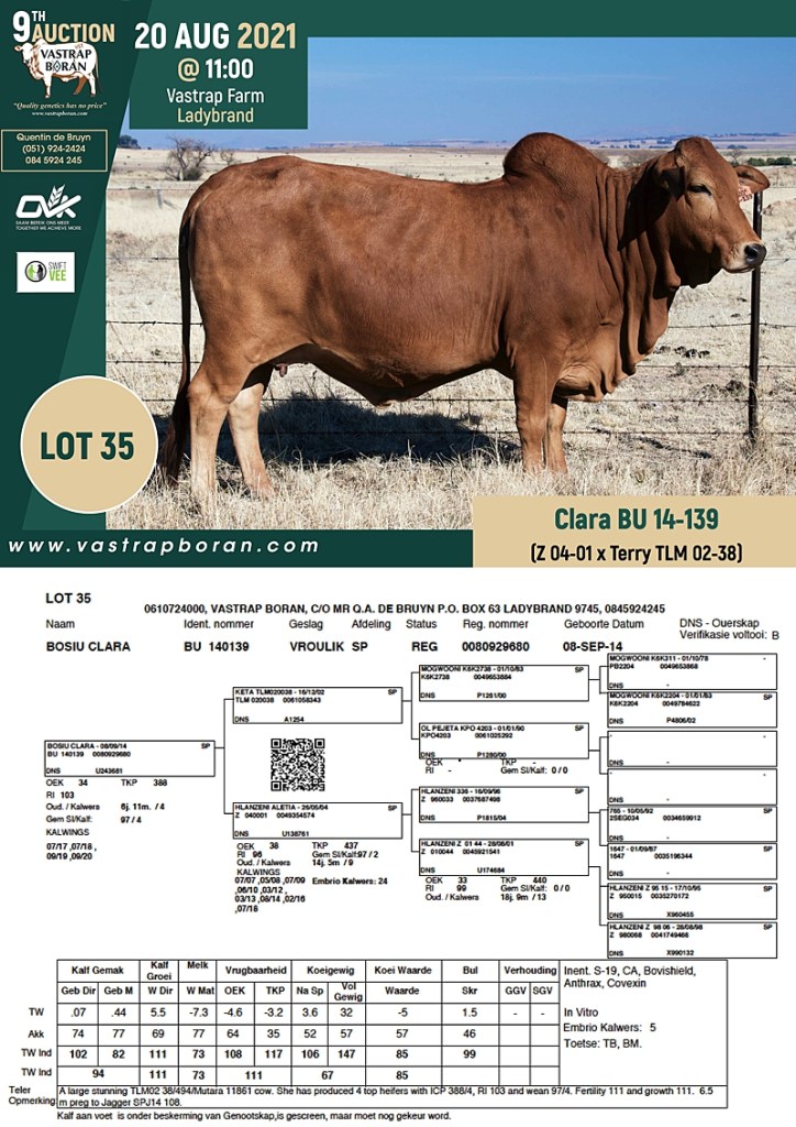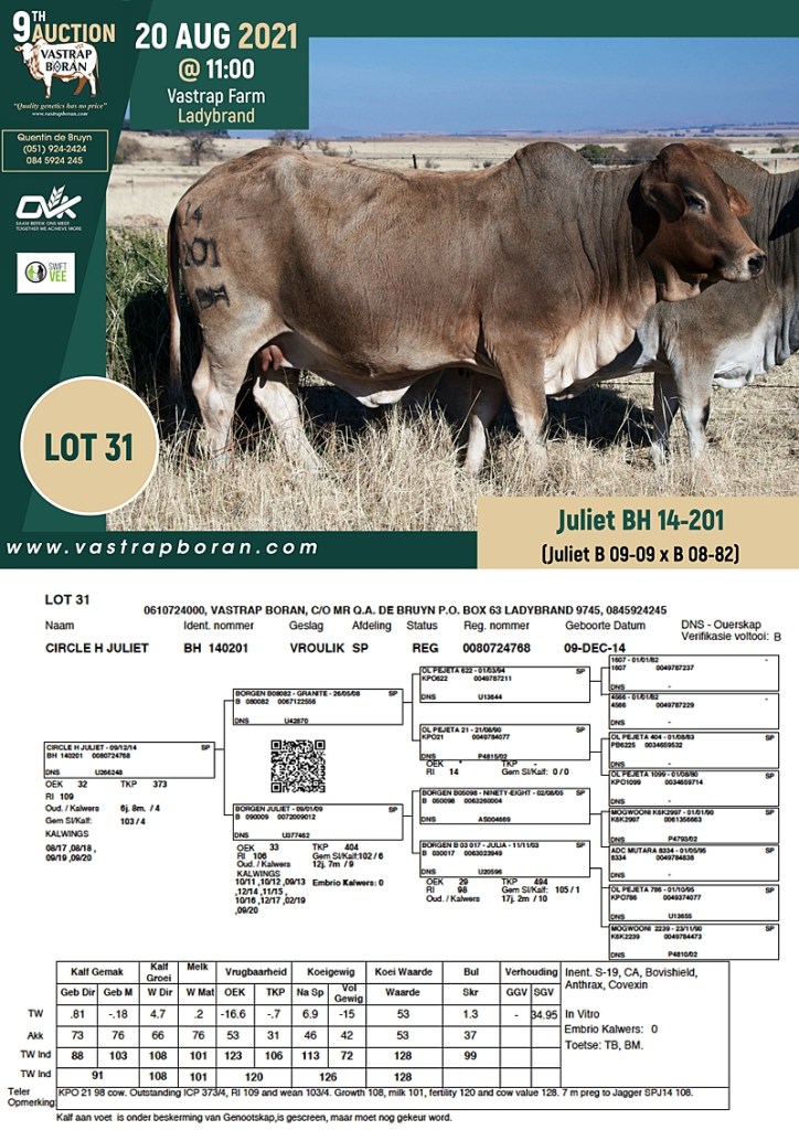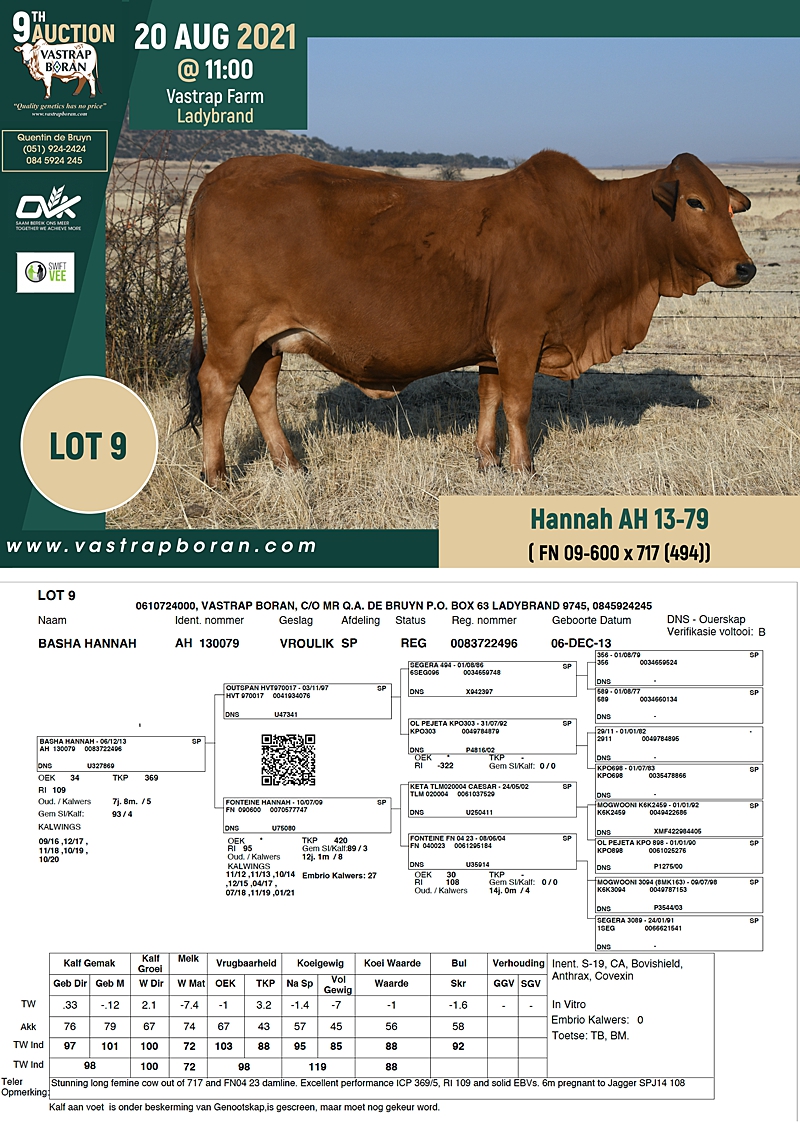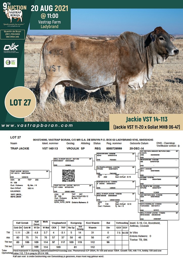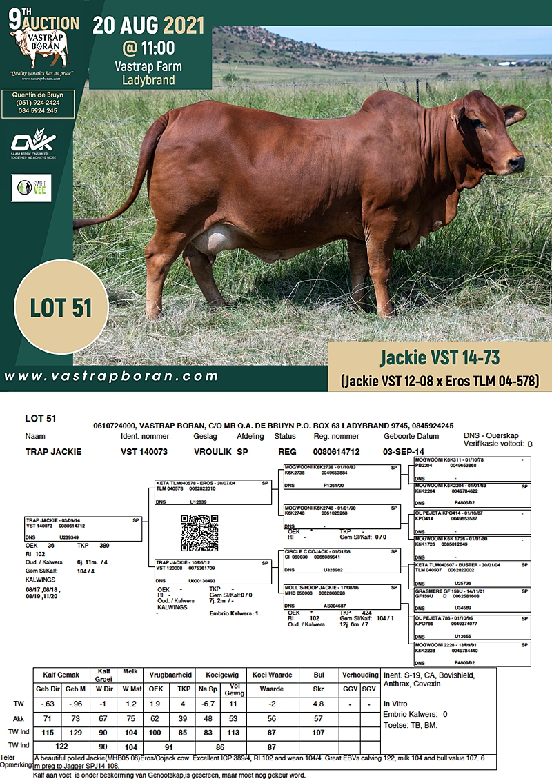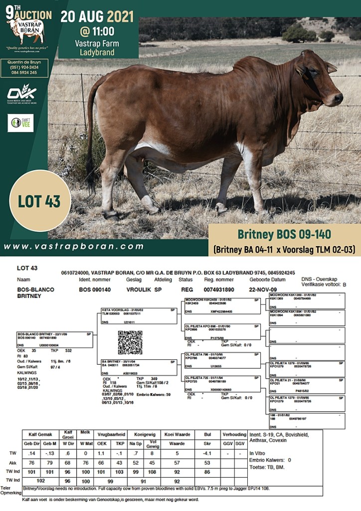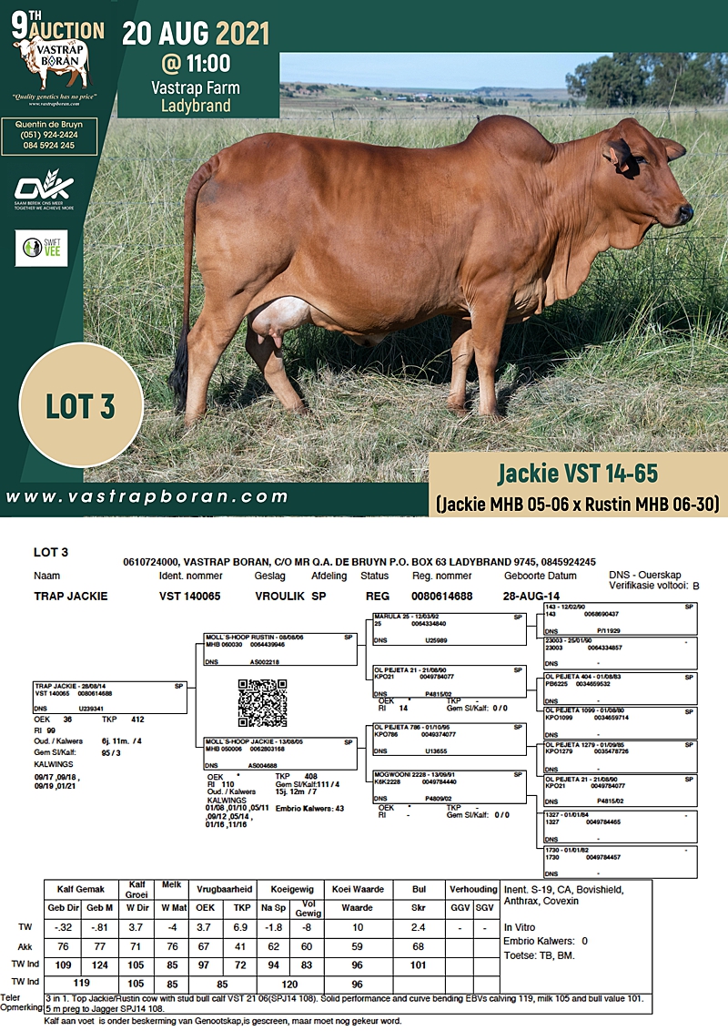 2021 Vastrap Auction CATALOGUE How to Use EBVs for Selection The Vastrap Boran 7-year Old Cow Offering – your best value proposition ever! Vastrap Cow Performance Data
