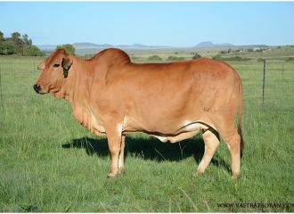 Eve TLM 02-43 is Vastrap Boran’s foundation dam. She has HVT 95-22 on her sire side and “Navasha” FE 93-66 on her dam side. She has more capacity than any Boran I have ever seen and her mother FE 97-27 is 16 years old and still producing! She is particularly deep and breeds a superb back…