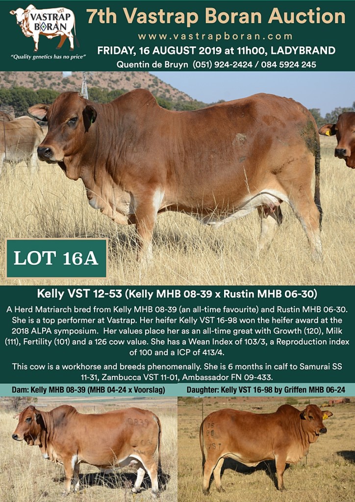 The Kelly bloodline is fast becoming the most prolific genetic line in the South African boran industry. The Khan/Kelly offspring have broken every record in the book including the likes of Jumbo, Jester, Joker, Zinzan, Jameson etc not to mention all the Kelly female lines!!