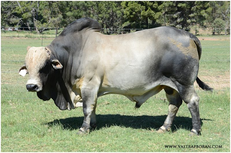 Rebel MHB 10-31 (Rose MHB 06-09 x Metusaleg HVT 95-17). This is undoubtedly the best of the 2010 crop of bulls produced at Vastrap. He impressed from a very young age and still does, with his extraordinary length, deep muscling on his bum, strong hocks and masculine neck and head. He has the added advantage of having a perfect sheath and the best temperament of all Vastrap bulls. Genetically, his mother is Rustin MHB 06-30’s full sister and Metusaleg goes back to 1383. This combination lends itself to being widely used within the Vastrap herd.
